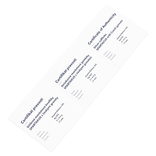 Stříbrné manžetové knoflíky SPARTAKUS s českými granáty