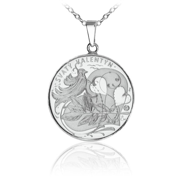 Proč si právě 14. února dávají zamilovaní dárečky a posílají si romantické esemesky? Ačkoli existuje více verzí, svátek podle některých pramenů dostal jméno podle kněze, který zemřel mučednickou smrtí za vlády Klaudia II. někdy ve 3. století n. l. Podle legendy se kněz zamiloval do dcery žalářníka a poslal jí milostný dopis, který podepsal – „tvůj Valentýn“. O pár století později (v roce 496 n. l.) pak papež Gelasius I. nahradil oslavy příchodu jara, tzv. Luperkálie, dnem sv. Valentýna. Jako den zamilovaných a romantické lásky se začal slavit asi od 14. století. První historicky doložená zamilovaná přání-básně, dnes označovaná jako Valentýnky, posílal své ženě z vězení mladý francouzský vévoda již v roce 1415. Svátek sv. Valentýna se postupně rozšířil a dnes se slaví v mnoha zemích světa. Na averzní straně medaile vyobrazila výtvarnice Zuzana Hubená nejtypičtější motiv, který je s tímto svátkem spojován, srdce – částečně propojená a navzájem se protínající. Srdce nejsou tvořena prvoplánově, dvě se blýskají v poli medaile. Spojnice tvoří antické akanty, které symbolizují tradici svátku a osobu sv. Valentýna. Jako všeobecný symbol míru a lásky je doplňuje holubice a vavřínové lístky. Vavřín nahrazuje rozkvetlé květy mandlovníku, kterými se dříve zamilovaní obdarovávali. Na reverzní straně medaile je svitek nebo listina, na které je vyryt text "Děkuji, že jsi". V horní i spodní části jsou umístěny snítky myrty. Motivy na okraji uzavírá perlovec neboli astragal, oblíbený ornament vzniklý v antice a běžný u nás od renesance, připomínající šňůru perel. Náklad není limitován.