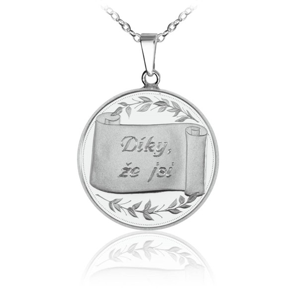 Stříbrný medailonek k svátku Sv. Valentýna na řetízku s textem Díky, že jsi - proof