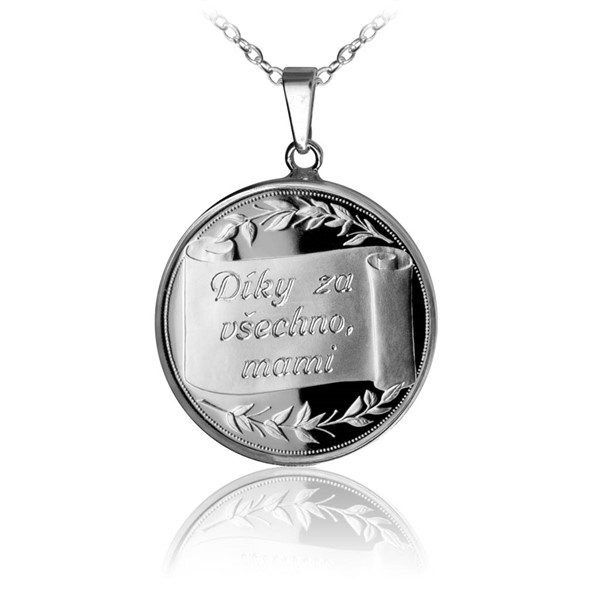 Stříbrný přívěsek Den matek 2012 předrytý text proof
