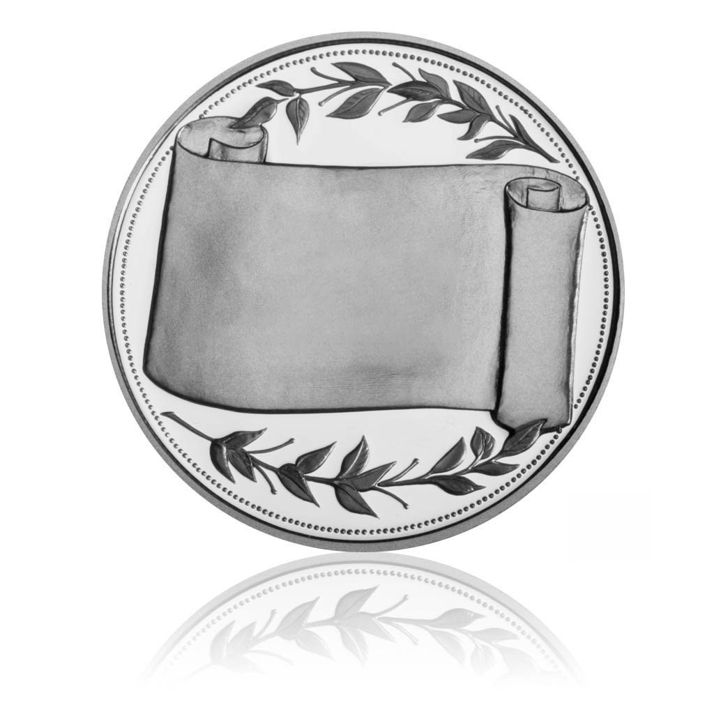 Na reverzní straně, kterou ztvárnila výtvarnice Majka Wichnerová, je ponecháno volné pole ve tvaru svitku doplněného ozdobnými lístky, na něž je možné vyrýt osobní vzkaz dle přání. Motivy na okraji uzavírá perlovec neboli astragal, oblíbený ornament vzniklý v antice a běžný u nás od renesance, připomínající šňůru perel.