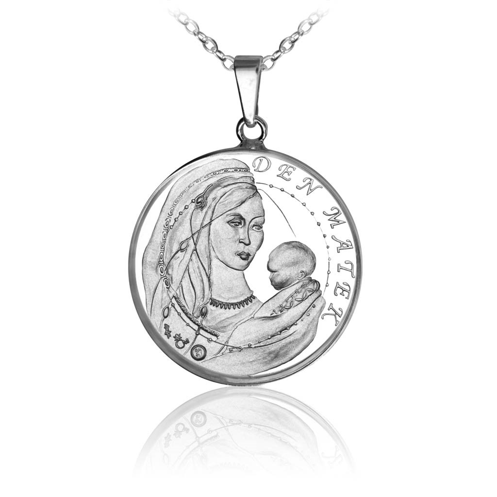 Den matek je krásným a významným svátkem, kdy všechny děti bez rozdílu věku vyjadřují svým maminkám lásku a poděkování. Slaví se v různé dny na mnoha místech světa. V České republice připadá tento svátek na druhou květnovou neděli. Hezkým a hodnotným dárkem pro maminku je právě stříbrný medailonek s nápisem. Averzní strana, jejíž autorkou je Zuzana Hubená, znázorňuje matku v ozdobném závoji s dekorativními prvky a dítětem v náručí. Motiv na pravé straně uzavírá opis ozdobným písmem „Den matek“. Na reverzní straně, kterou ztvárnila Majka Wichnerová, je na symbolickém svitku doplněném ozdobnými lístky vyryt text „Díky za všechno, mami“. Motivy na okraji uzavírá perlovec neboli astragal, oblíbený ornament vzniklý v antice a běžný u nás od renesance, připomínající šňůru perel.