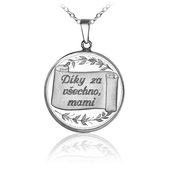 Stříbrný přívěsek Den matek "Díky za všechno, mami" proof