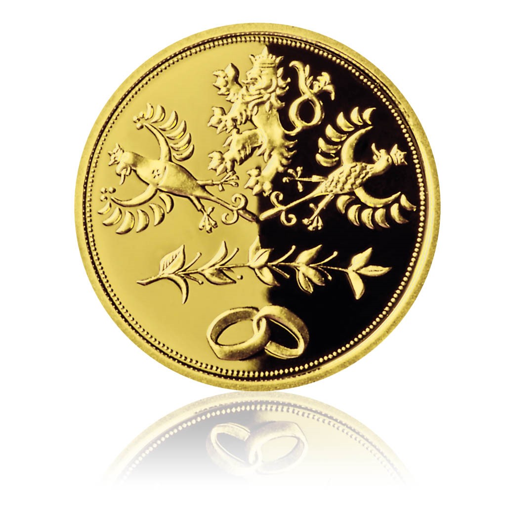 Obdarovávat snoubence a novomanžele patří k mnoha svatebním zvykům a rituálům. Příbuzní, přátelé a známí často váhají, jaký dárek zvolit ke svatbě, na kterou byli pozváni. Starý zvyk, darovat snoubencům něco praktického do domácnosti, už se pomalu přežívá. Často se totiž stávalo, že novomanželům se sešlo mnoho darů nechtěných. A tady přichází Česká mincovna s ideálním řešením. Zlatý umělecky ztvárněný dukát je dárek trvalé hodnoty a vždy ceněný. Akademická sochařka Majka Wichnerová zvolila na averzní stranu medaile motiv navlékání prstenu a podání ruky jako symbolu spojení dvou životů. Obě strany medaile zdobí snítky myrty, která nechybí na žádné svatbě. Reverzní stranu zdobí trojice stylizovaných heraldických zvířat, jež je doplněna snítkou myrty a ve spodní části pak snubními prsteny, jako slibem lásky a věrnosti. Motivy na okraji uzavírá perlovec neboli astragal, oblíbený ornament vzniklý v antice a běžný u nás od renesance, připomínající šňůru perel.