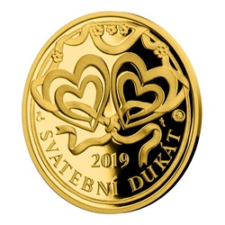 Takový je i nový zlatý dukát České mincovny pro rok 2019. Jeho autorkou se stala medailérka Lenka Nebeská, DiS. Averzní stranu věnovala propracované kompozici, která se skládá z nápisu SVATEBNÍ DUKÁT 2019 a dvou dvojic srdcí propojených osičkami, mezi kterými se proplétá ozdobná stužka. Stužka protkaná květinami se objevuje také na reverzní straně dukátu, kde vymezuje prostor pro vyrytí osobního věnování či jiného textu dle vašeho přání o rozsahu 3 řádků po 10 znacích včetně mezer.