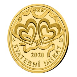 Ženich a nevěsta jedoucí na dvoukole se proto stali hlavním motivem reverzní strany svatebního dukátu medailérky Lenky Nebeské, DiS., s ročníkem 2020. Obklopují je slavnostní stužky, květy a srdce, která jsou – spolu s nápisem SVATEBNÍ DUKÁT 2020 – hlavním motivem averzní strany dukátu.