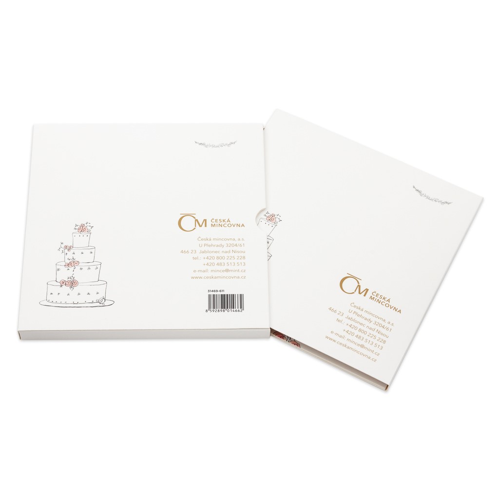 Každý dukát je uložen do dárkového balení v podobě leporela s přebalem, kam můžete vepsat srdečné věnování a kam mohou novomanželé vlepit svatební fotografii.