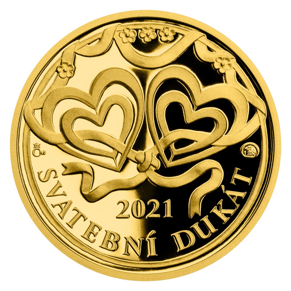Ženich a nevěsta jedoucí na dvoukole se proto stali hlavním motivem reverzní strany svatebního dukátu medailérky Lenky Nebeské, DiS., s ročníkem 2021. Obklopují je slavnostní stužky, květy a srdce, která jsou – spolu s nápisem SVATEBNÍ DUKÁT 2021 – hlavním motivem averzní strany dukátu.