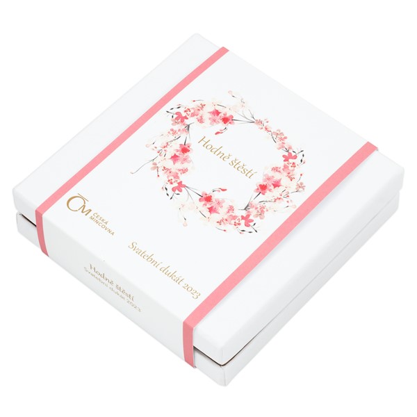 Dárkové balení obsahuje vedle dukátu také certifikát pravosti s prostorem pro vepsání osobního věnování. Nepřehlédněte ani další varianty svatebního penízku – v naší nabídce na rok 2023 najdete dva různé drahé kovy i verze, na které lze vyrýt věnování.