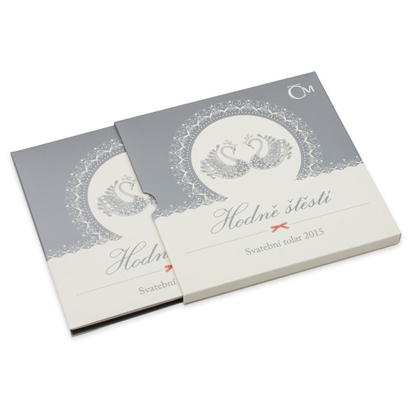 Svatební den provází směsice smíchu, dojetí, radosti i nervozity. Už pro tyto emoce, které novomanželé prožívají spolu s rodinou a přáteli, jsou okamžiky jejich velkého dne tak výjimečné a vzpomínky na ně patří k těm nejvzácnějším v životě. Vyjádřete svatebčanům svá nejupřímnější přání věčné lásky, štěstí a pevného zdraví originálně – pomocí půvabného uměleckého díla. I v roce 2015 totiž Česká mincovna připravila tradiční emisi stříbrných svatebních tolarů.