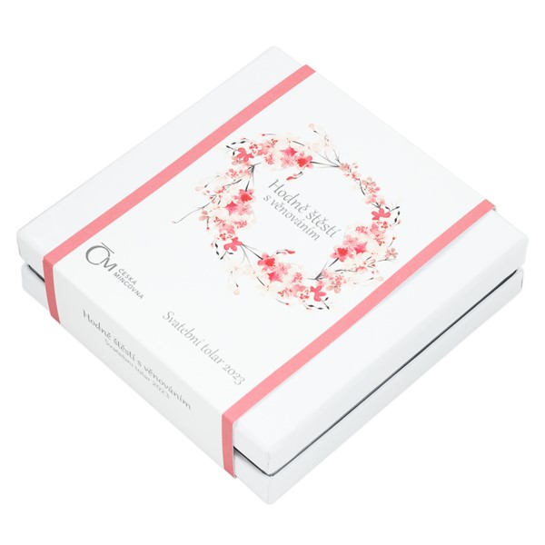 Srdečné věnování můžete vepsat i do certifikátu pravosti, který je součástí dárkového balení. Nepřehlédněte ani další varianty svatebního penízku – v naší nabídce na rok 2023 najdete dva různé drahé kovy i varianty bez vyrytého věnování.