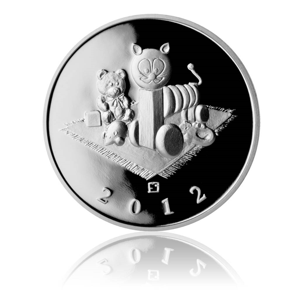 Jáchymovské tolary, ražené v 16. století hrabětem Šlikem v Jáchymově (původně německy Joachimsthalergulden), daly vzniknout slovními přesmyčkami i názvu dnešních dolarů. Tolar se tak stal symbolem nejen mnoha dnešních mincí, ale zejména drahého kovu - stříbra. Dárek k narození dítěte tak v sobě skrývá trvalou hodnotu drahého kovu, a navíc i uměleckou práci výtvarníků a rytců mincovny. Motivy medailí k narození dítěte mincovna pravidelně obměňuje. Na averzní straně stříbrného tolaru 2012 je vyobrazeno dítě, ležící na bříšku na přebalovacím pultu, s napřaženou ručičkou a chrastítkem. Motiv uzavírá opis „Tolar k narození dítěte“. Na reverzní straně je kompozice hraček, doplněná v opise letopočtem „2012“. Náklad není limitován.