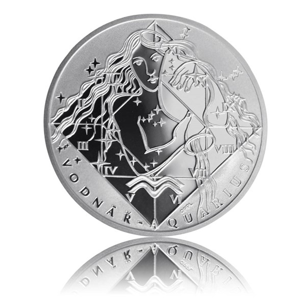 Vodnář, latinsky Aguarius, 22. ledna až 20. února. Vzdušné znamení s vedoucí planetou Uran. Šťastným kovem je olovo, květinou kapradí a dnem čtvrtek. Společná strana všech medailí v sérii znamení zvěrokruhu nese motiv hvězdné oblohy s jednotlivými souhvězdími uspořádanými tak, jak jdou na obloze za sebou, a tudíž i v průběhu roku. Na straně s jednotlivými znameními umístěnými v leštěném kosočtverci používaném astrology je umístěno nejen znamení, ale i jeho značka, český a latinský nápis. Hvězdičky svým rozestavením odpovídají příslušnému souhvězdí na obloze.