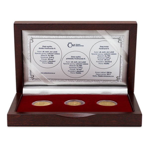 U příležitosti 390. výročí korunovace Ferdinanda III. Habsburského českým králem roku 1627 připravila Česká mincovna sběratelskou lahůdku pro opravdové numismatiky. Sadu tří zlatých dukátových ražeb, která se skládá z jednoho novodobého dukátu a dvou replik vzácných historických exemplářů.