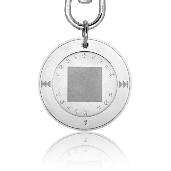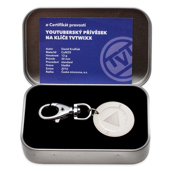 Přívěsek z dílny mladého medailéra Davida Kružliaka zdobí charakteristická tlačítka PLAY, STOP, REW a FFWD doplněná texty TVTWIXX, FOLLOW US, SUBSCRIBE a THANK YOU.