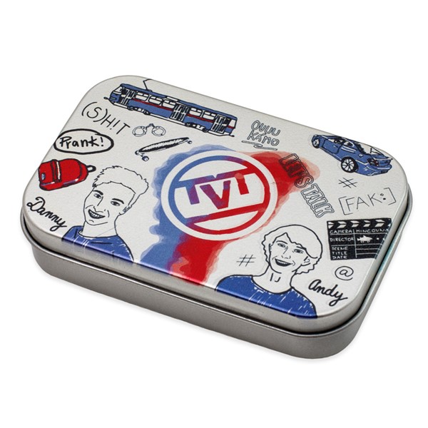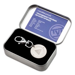 Nedílnou součástí každého přívěsku jsou praktické poutko s karabinou, které umožní mít přívěsek stále u sebe, třeba na klíčích, a vychytaná plechová krabička s tematickým potiskem.