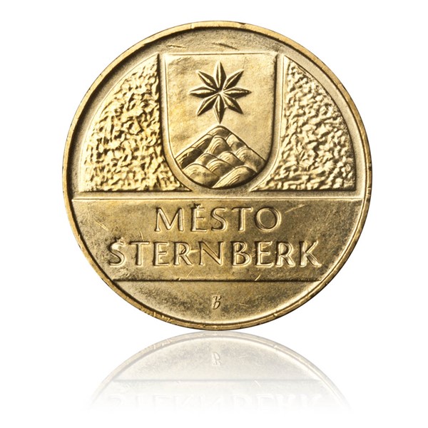 Na straně reverzní je jako u všech žetonů z kolekce lokální dukáty znak města Šternberk.