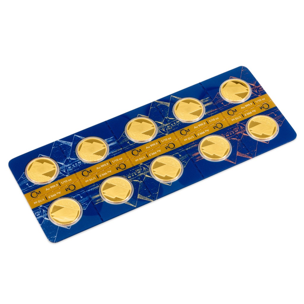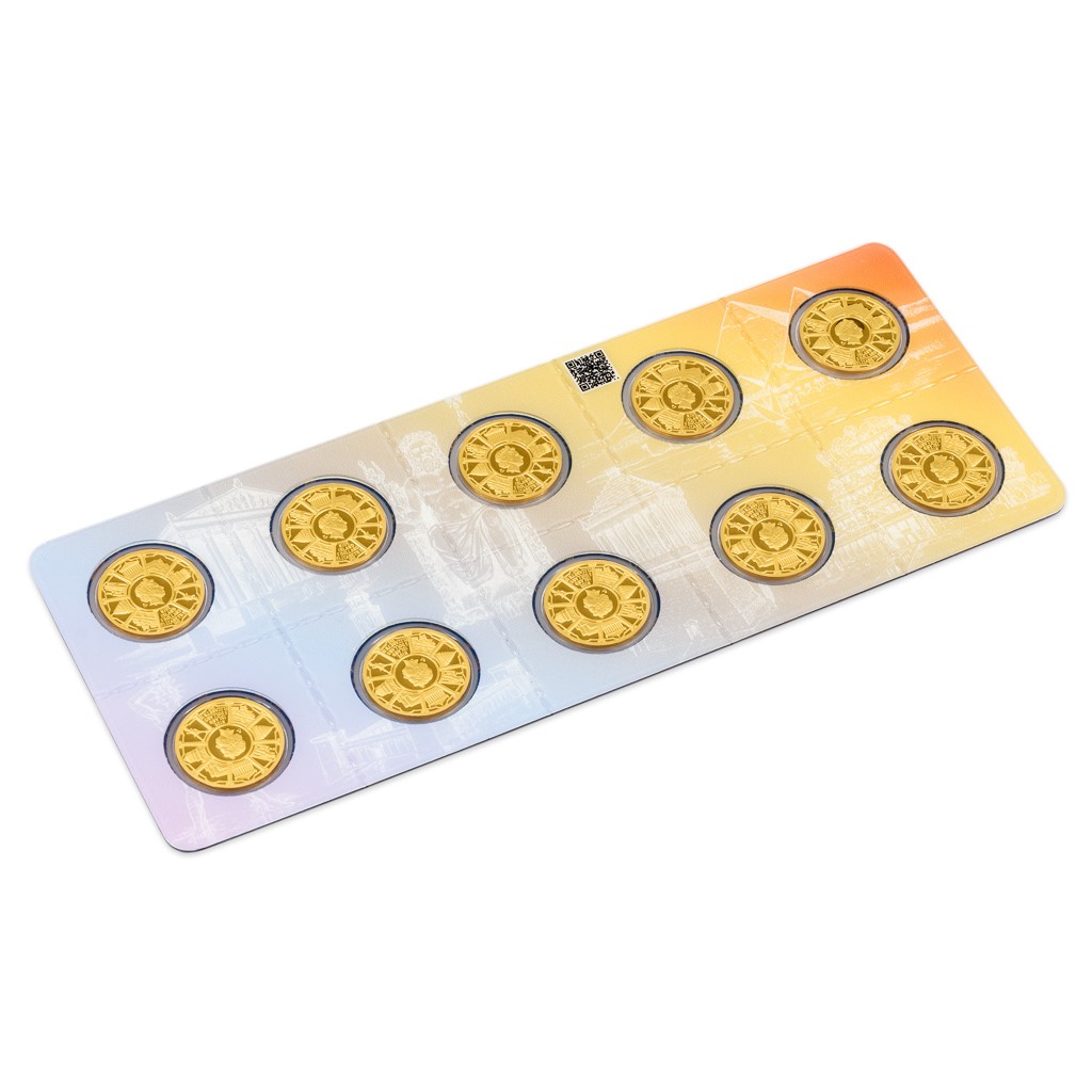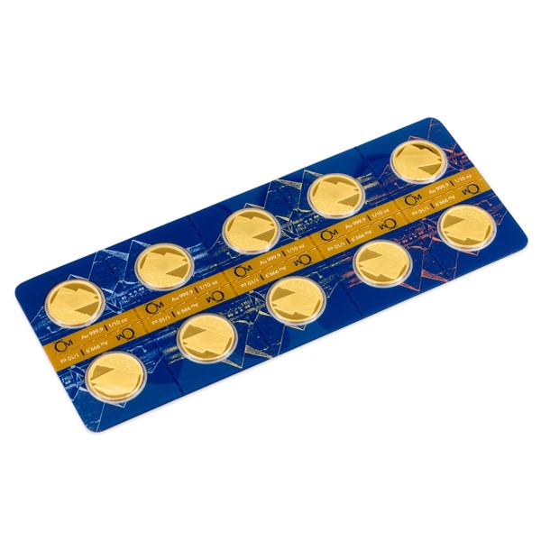 Deset identických mincí je zataveno do speciálního balení. To je perforováno, aby v případě potřeby mohlo být pohodlně rozděleno na deset částí.