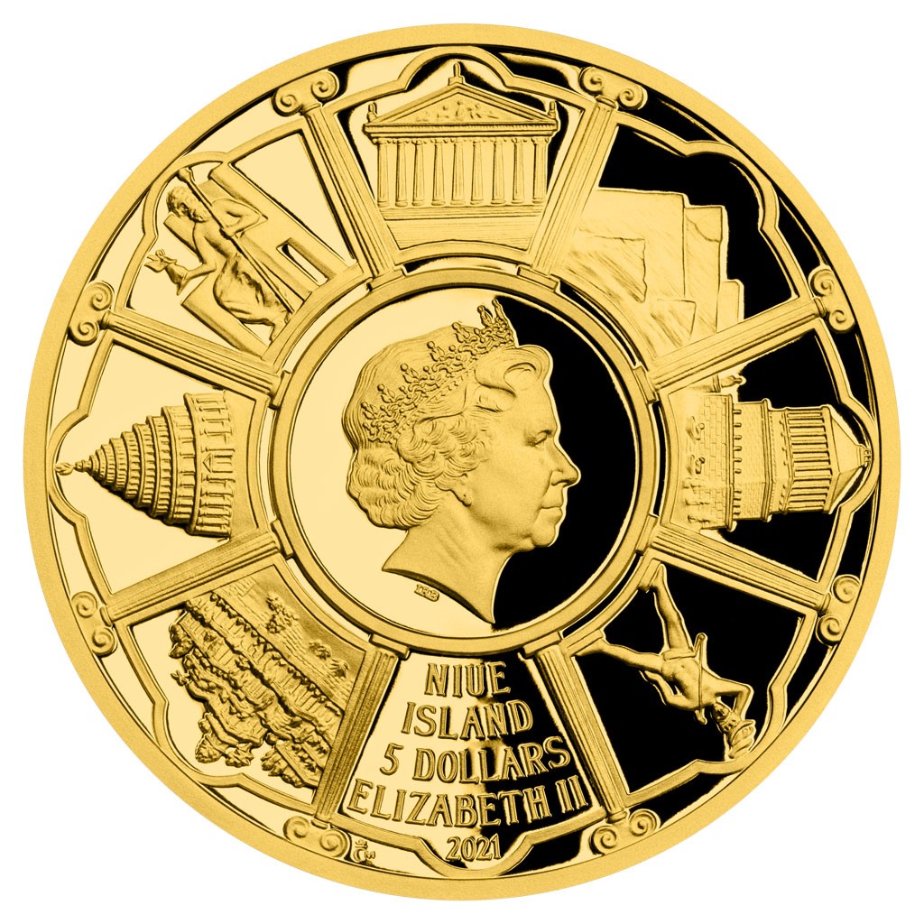 Od doby, kdy řecký spisovatel Antipatros sestavil seznam velkolepých staveb v oblasti východního Středomoří, uplynula celá dvě tisíciletí. Starověkým památkám, které vstoupily do dějin jako sedm divů světa, je věnován cyklus České mincovny. První zlatá mince o hmotnosti jedné desetiny trojské unce představuje pyramidy v Gíze.