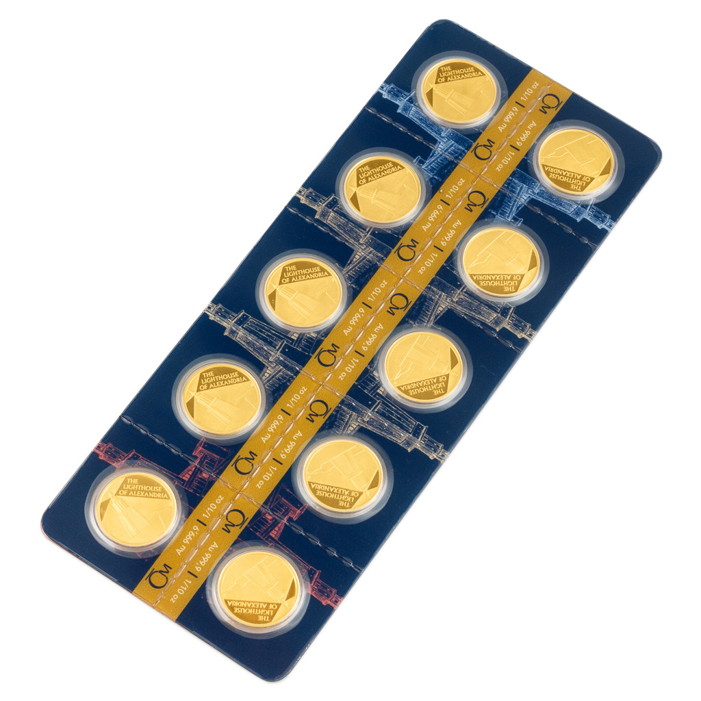 Poslední emise z cyklu České mincovny, který je věnovaný sedmi divům starověkého světa, připomíná maják na ostrově Faru. Tento speciální produkt ocení především investoři. Celé balení obsahuje jednu trojskou unci zlata, ovšem rozdělenou do podoby deseti identických mincí. V momentě, kdy chcete zpeněžit jenom část své investice, můžete balení rozlámat a prodat po kouscích…