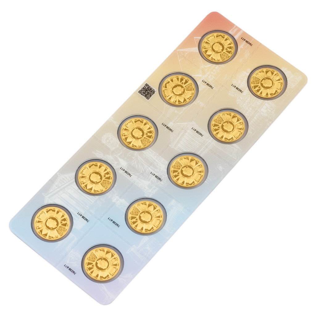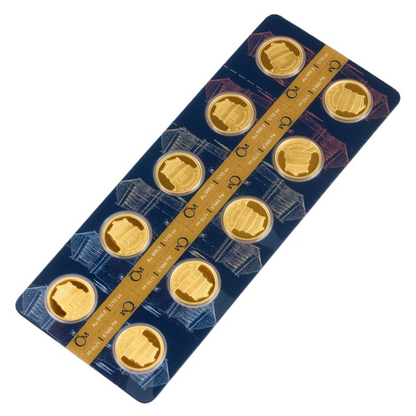 Deset identických mincí je zataveno do speciálního balení. To je perforováno, aby v případě potřeby mohlo být pohodlně rozděleno na deset částí.