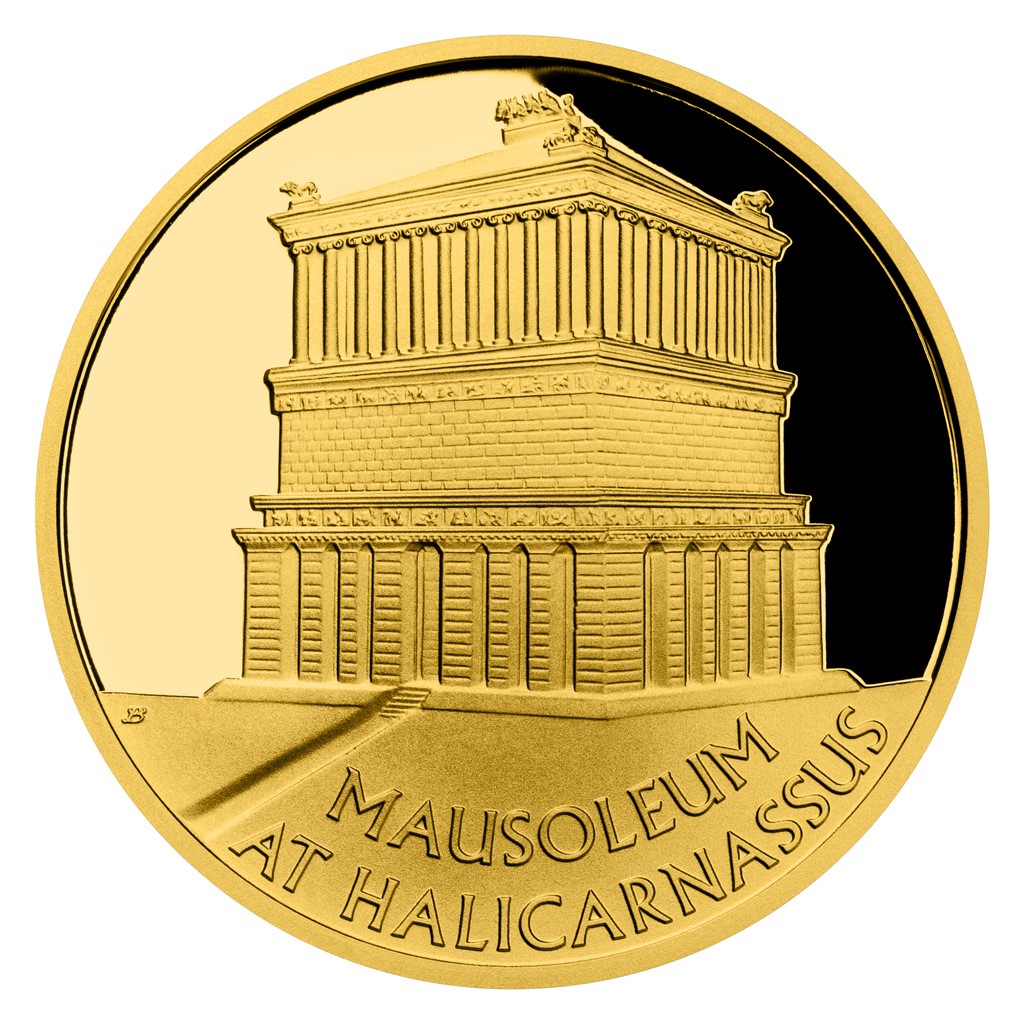 Pátým ze sedmi divů starověkého světa je mauzoleum v Halikarnassu. Legendární památku připomíná zlatá mince České mincovny o hmotnosti jedné desetiny trojské unce.