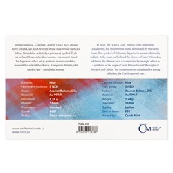 V roce 2021 dostaly všechny varianty investiční mince nový kabátek, ale hlavní myšlenka zůstala zachována. Reverzní straně vévodí český lev v netradičně realistickém podání se Svatováclavskou korunou na hlavě. Averzní strana pak předkládá orlici na štítu, která je syntézou svatováclavského, moravského a slezského dravce. Autorem reliéfu je již tradičně medailér Asamat Baltaev, DiS. Protože mince České mincovny vycházejí v licenci zahraničního emitenta, kterým je ostrov Niue, jejich averzní strana nese jeho nezbytné atributy – jméno a portrét královny Alžběty II., nominální hodnotu 5 DOLLARS (NZD) a rok emise 2021.