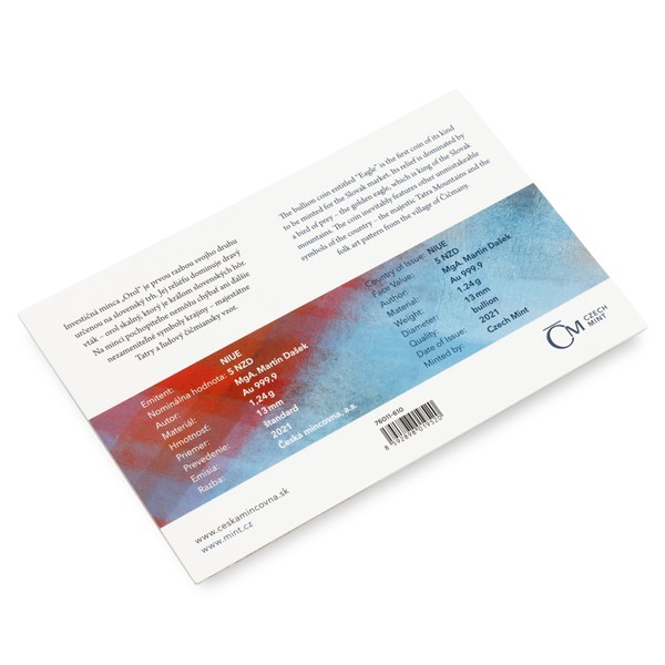 Světové investiční mince bývají věnovány silným národním symbolům a ani „Orol“, který je první ražbou svého druhu určenou pro slovenský trh, není výjimkou. Hmotnost zlaté mince České mincovny činí 1/25 trojské unce.