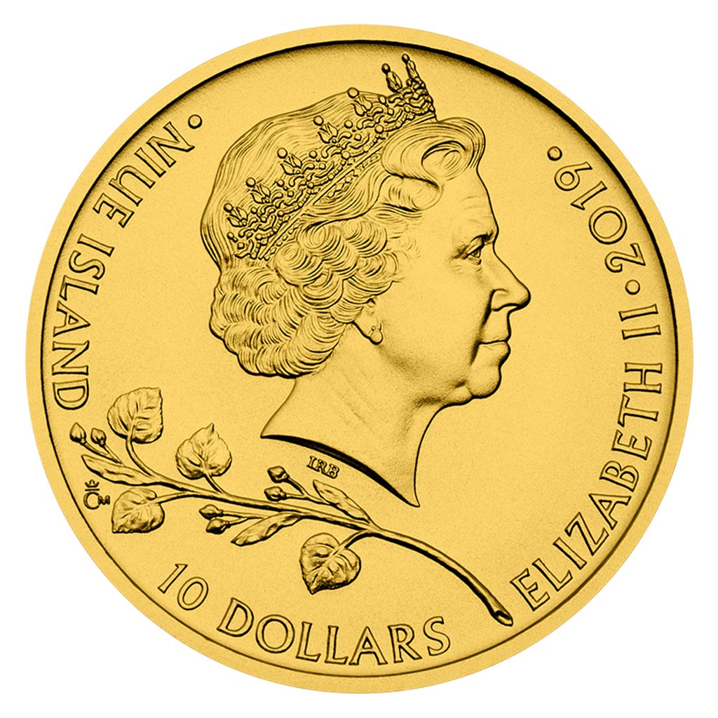 Vedle dvouocasého českého lva předkládá reverzní strana investiční mince ještě další dva symboly české státnosti – Svatováclavskou korunu a plamennou svatováclavskou orlici. Averzní strana nese lipovou ratolest a atributy ostrova Niue, který České mincovně poskytuje zahraniční licenci k ražbě vlastních mincí – tj. portrét a jméno královny Alžběty II., rok emise 2019 a nominální hodnotu 10 DOLLARS (NZD). Autorem původního kresebného návrhu ražby se stal výtvarník Jaroslav Bejvl, který nás však ve věku 75 let navždy opustil, a tak se osiřelé mince ujal medailér Asamat Baltaev, DiS.