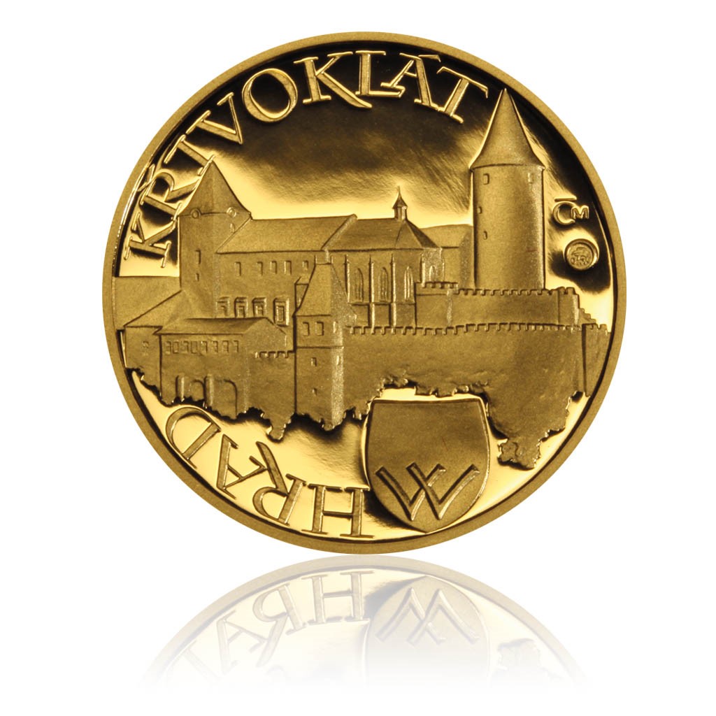 Zlatá čtvrtuncová medaile Hrad Křivoklát proof