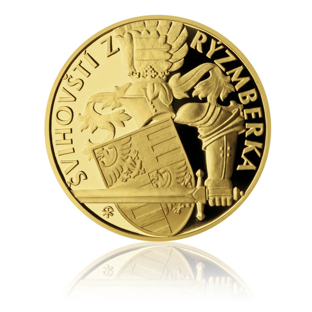 Zlatá čtvrtuncová medaile Hrad Rabí proof