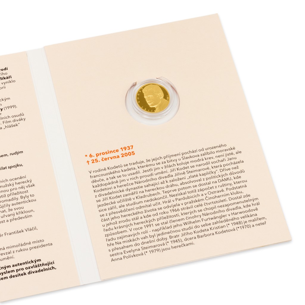 Volný cyklus České mincovny s názvem Hvězdy stříbrného plátna vítá další výraznou osobnost české kinematografie. Po Karlu Fialovi, Rudolfu Hrušínském a Vladimíru Menšíkovi se na pamětních medailích z ryzího zlata objevuje jedinečný Jiří Kodet.