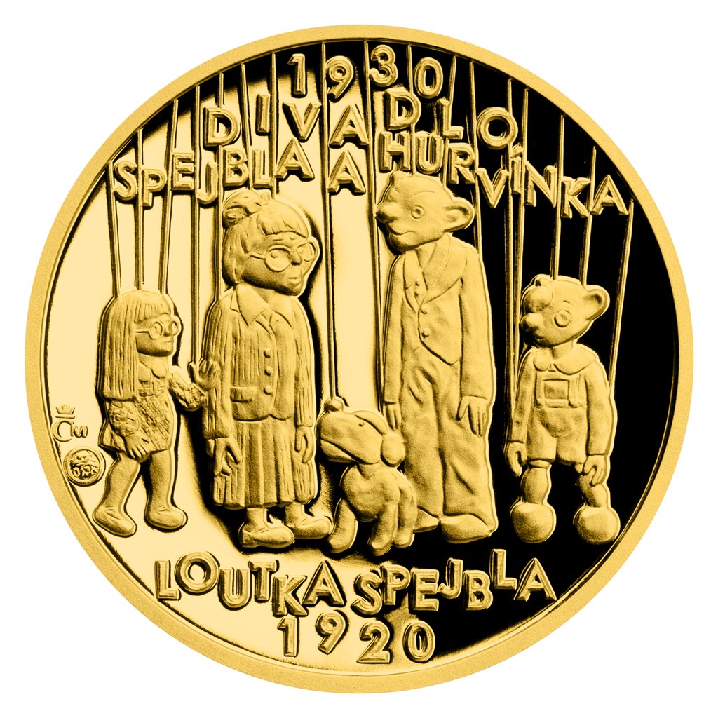 Zlatá čtvrtuncová medaile Příběhy naší historie - Loutka Spejbla proof