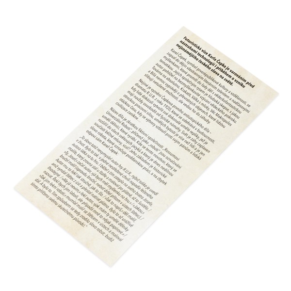 V roce 2020 uplynulo rovných 100 let od uvedení divadelní hry R.U.R., ve které poprvé zaznělo nejslavnější české slovo na světě – robot. U příležitosti tohoto výročí vychází čtvrtuncová zlatá medaile České mincovny z cyklu Příběhy naší historie.
