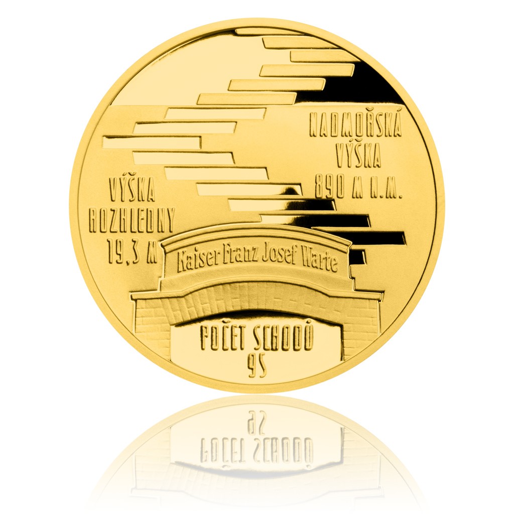 Osmá emise zlaté čtvrtuncové medaile České mincovny ze série s názvem Rozhledny patří nejstarší vyhlídkové věži v Jeseníkách. Potenciál Biskupské kupy objevili turističtí nadšenci již roku 1875.