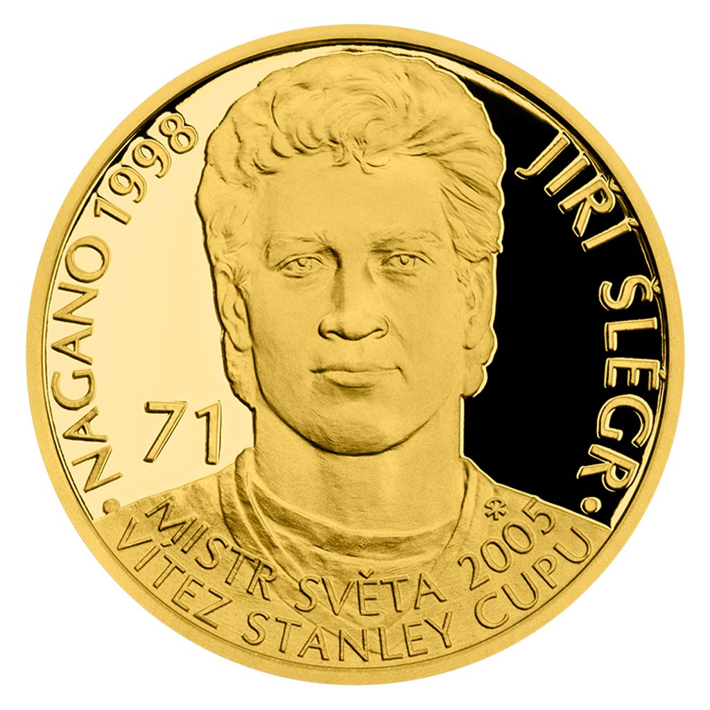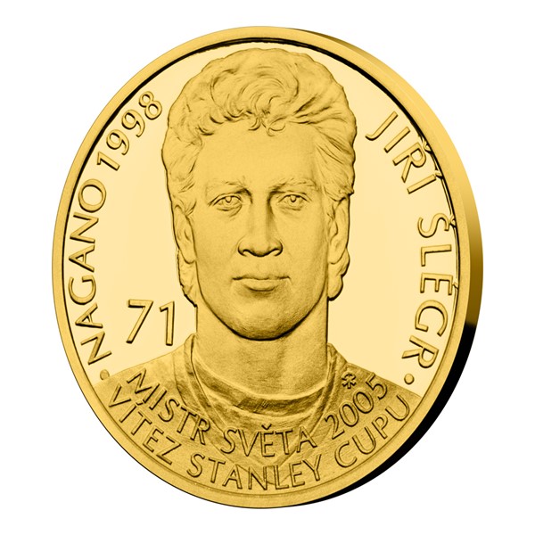 Dalším „zlatým hochem“, který se objevuje na zlaté minci České mincovny ze sběratelské série „Legendy československého hokeje“, se stal Jiří Šlégr.