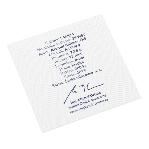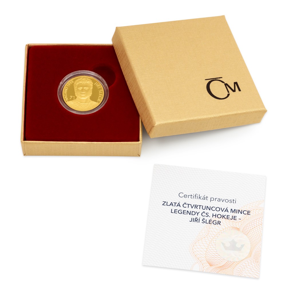 Zlatá čtvrtuncová mince Legendy čs. hokeje - Jiří Šlégr proof
