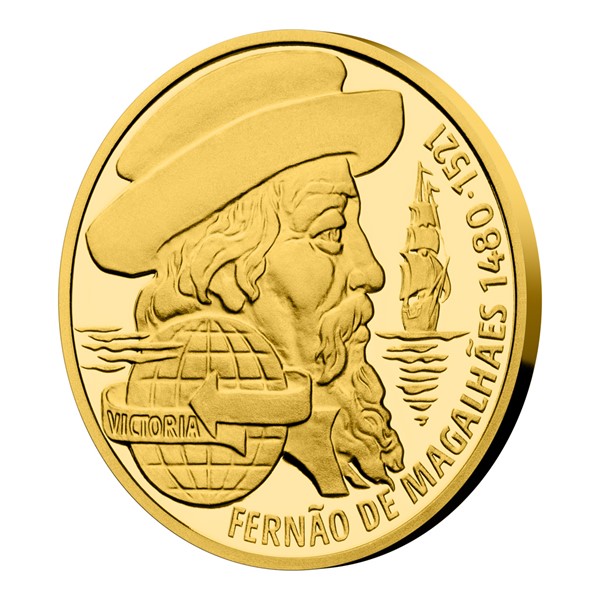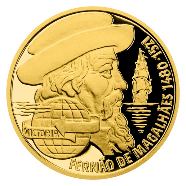 Druhým mořeplavcem, kterému vzdává hold minisérie zlatých mincí České mincovny s názvem Na vlnách, je Fernão de Magalhães.