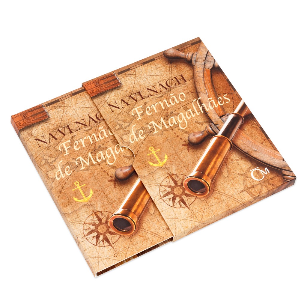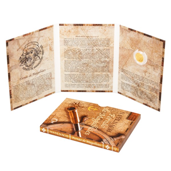 Nedílnou součástí mince je výpravné balení, které vedle pojednání o světoborné plavbě kapitána Magalhãese obsahuje ještě původní kresby Michala Vitanovského.