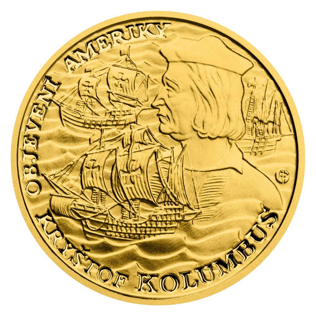 Zlatá čtvrtuncová mince Objevení Ameriky - Kryštof Kolumbus proof
