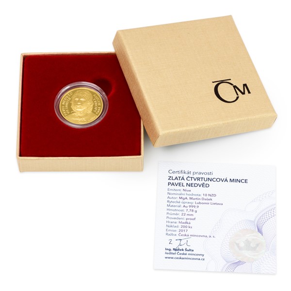 Zlatá čtvrtuncová mince Pavel Nedvěd proof