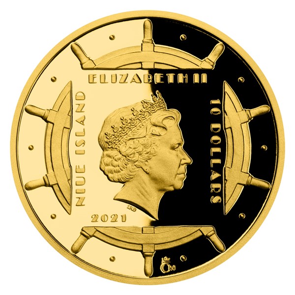 Reverzní strana mince, kterou zpracoval medailér MgA. Martin Dašek, je rovným dílem věnována oběma výpravám. Amundsena připomíná psí spřežení a stan s norskou vlajkou, Scotta symbolizuje skupina lyžařů a pohřební mohyla. Kompozici reverzu dotváří vyobrazení tučňáka, mapa Antarktidy s vyznačenými trasami polárníků, směrová růžice a nápis DOBÝVÁNÍ JIŽNÍHO PÓLU. Averzní strana nese kormidelní kolo coby symbol objevných cest. Protože mince České mincovny vycházejí v zahraniční licenci ostrova Niue, předkládají na averzu ještě jméno a portrét královny Alžběty II., nominální hodnotu 10 DOLLARS (NZD) a rok emise 2021.