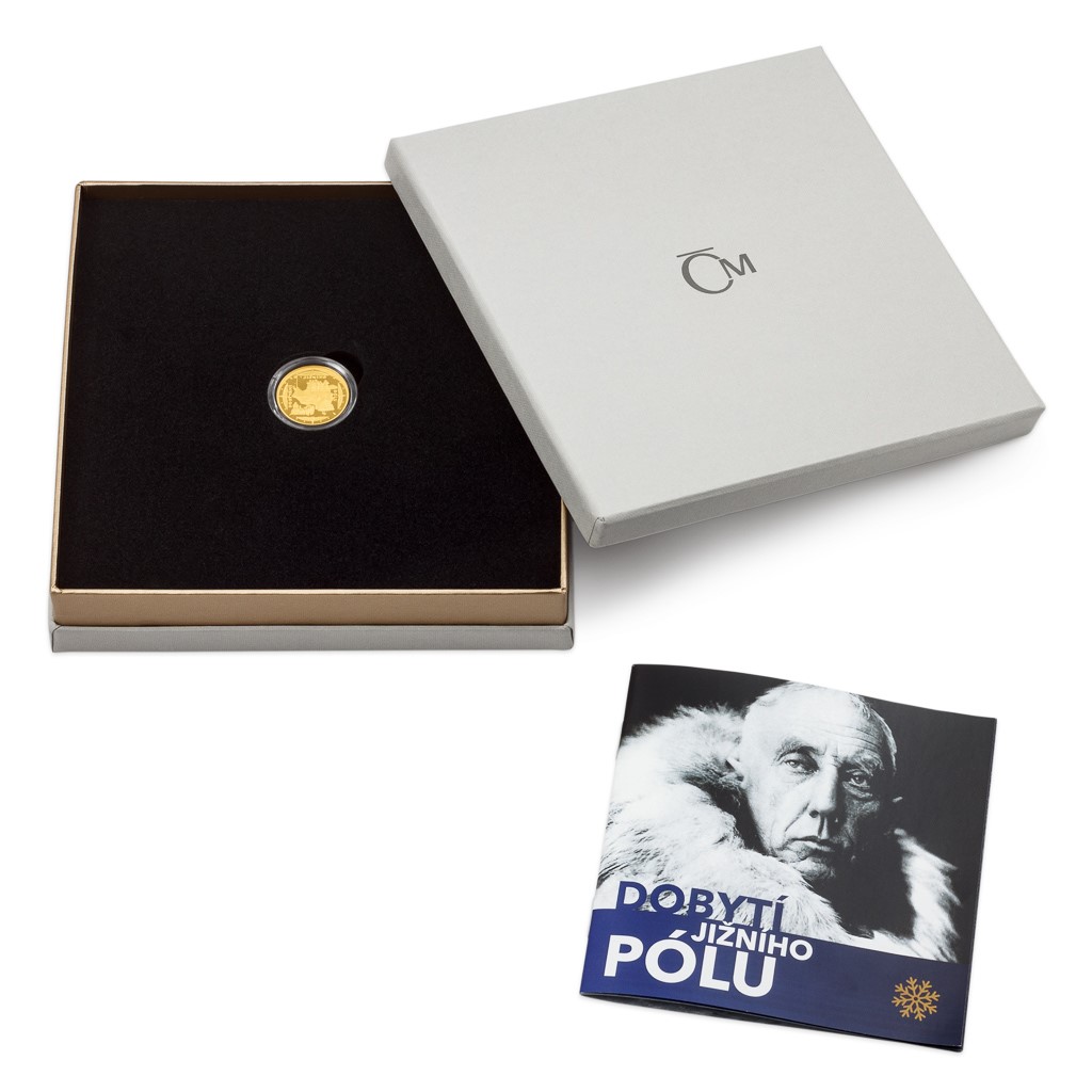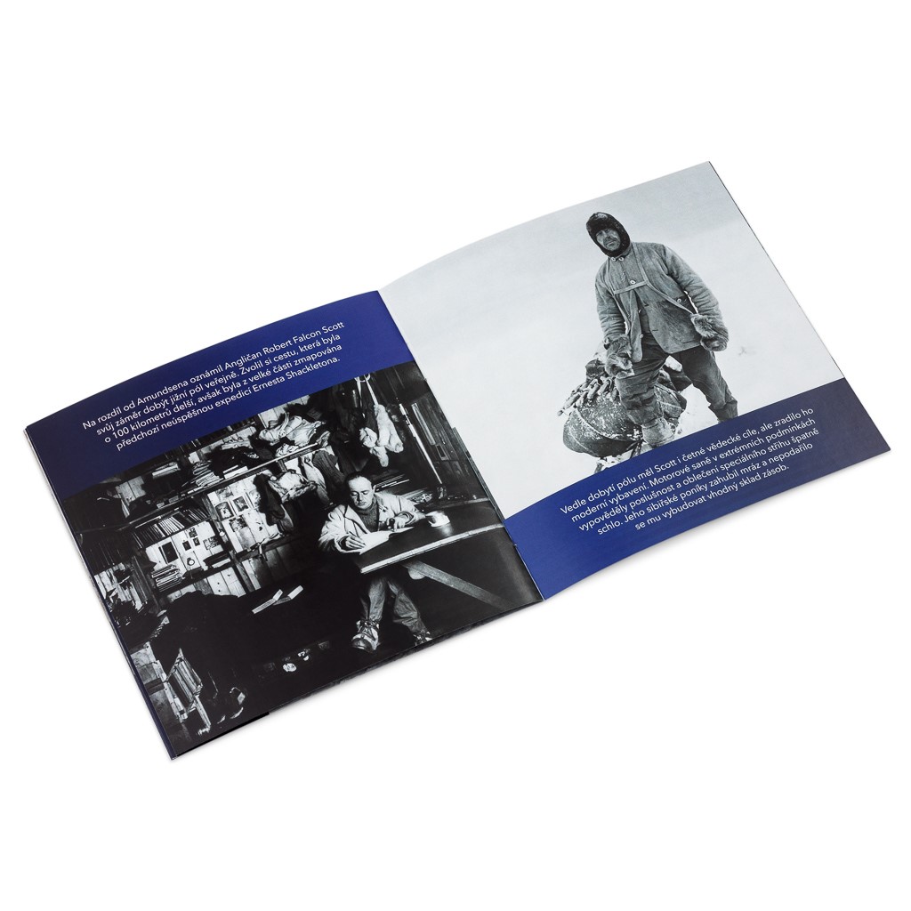 Součástí speciálního balení, do kterého je mince uložena, je výpravná brožura plná dobových fotografií a zajímavostí o dobyvatelích jižního pólu.