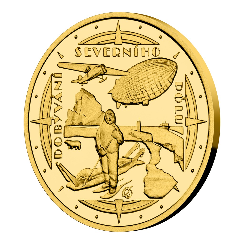 Dobytí severního pólu se v průběhu 20. století stalo posedlostí pro celou řadu objevitelů. Jejich dobrodružství připomíná první zlatá mince České mincovny z minisérie s názvem Polárníci.