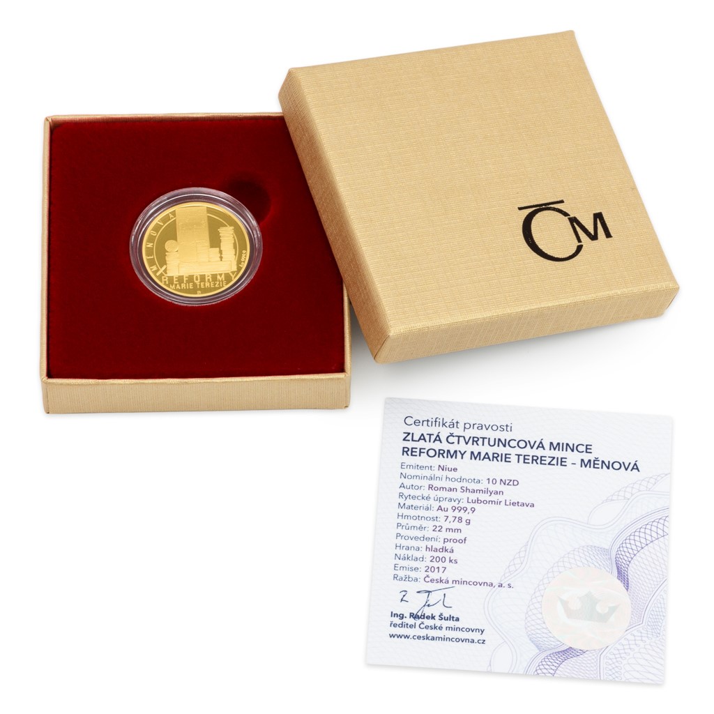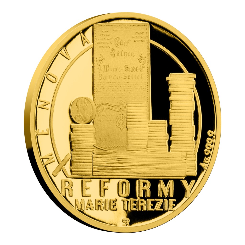 S tím, jak se blíží 300. výročí narození Marie Terezie, se uzavírá minisérie věnovaná jejím osvíceným rozhodnutím. Cyklus čtvrtuncových zlatých mincí korunuje reforma, která má s Českou mincovnou mnoho společného – měnová.