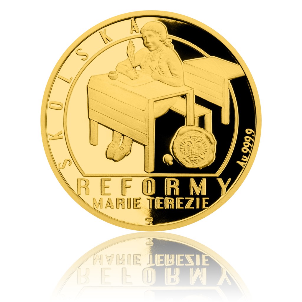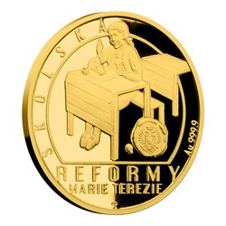 V roce 2017 slavíme 300. výročí narození Marie Terezie, jejíž moudrá rozhodnutí ovlivňují naše životy dodnes. Jedním z nich byla reforma, která i po staletích zůstává nejvýznamnější v historii českého školství. Připomíná ji první zlatá mince České mincovny z čtyřdílné minisérie nazvané Reformy Marie Terezie.