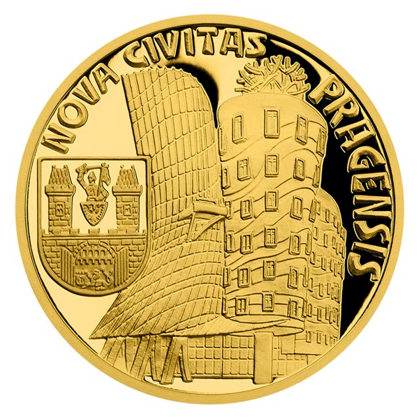Druhá zlatá mince České mincovny z minisérie Vznik královského hlavního města Praha je věnována Novému Městu.