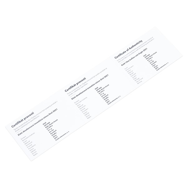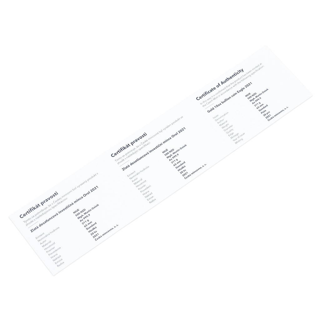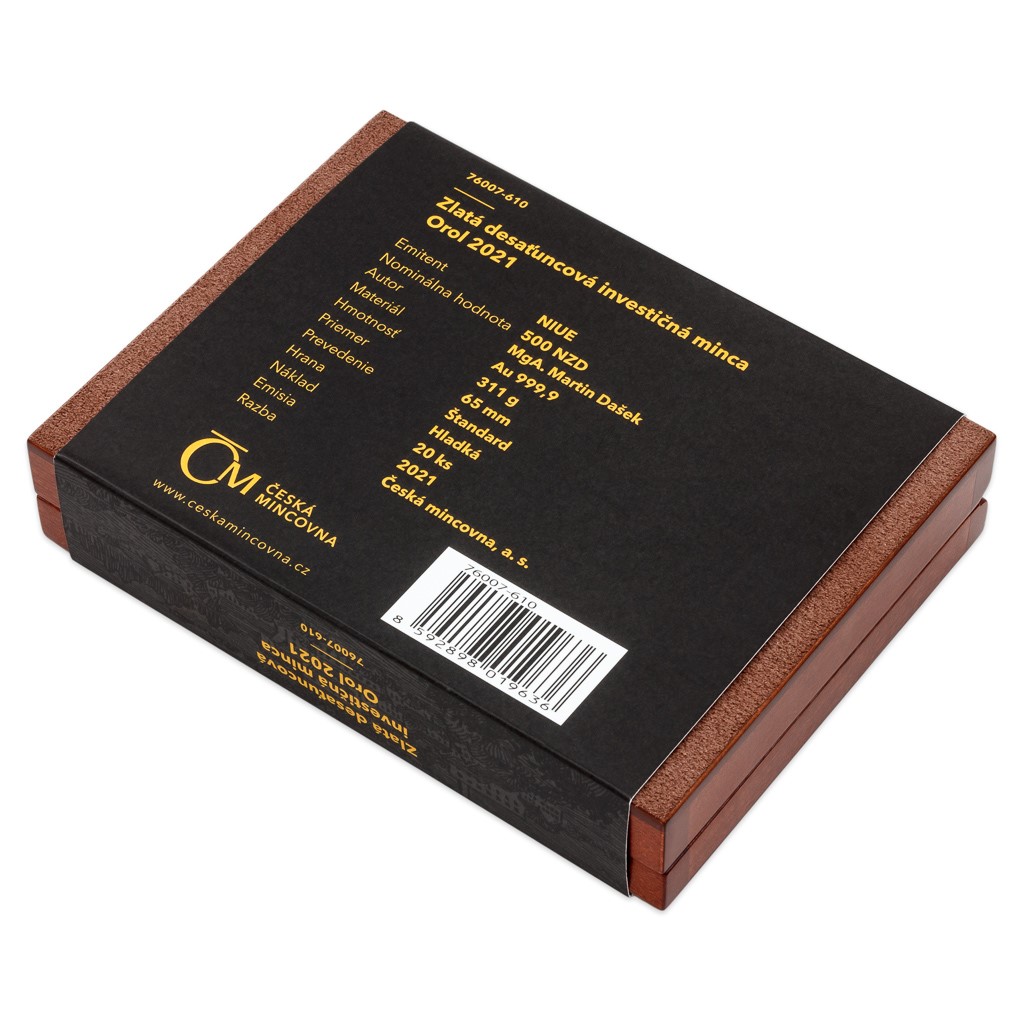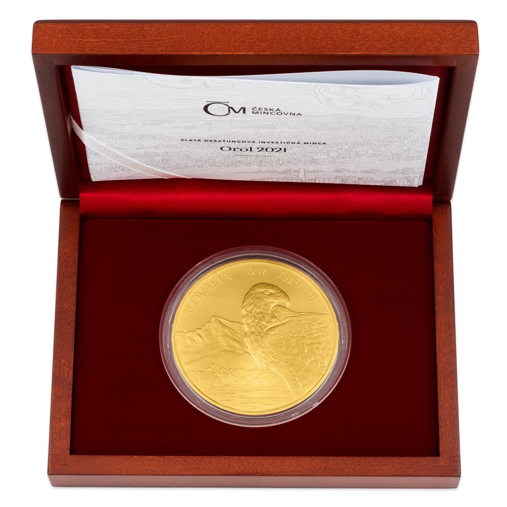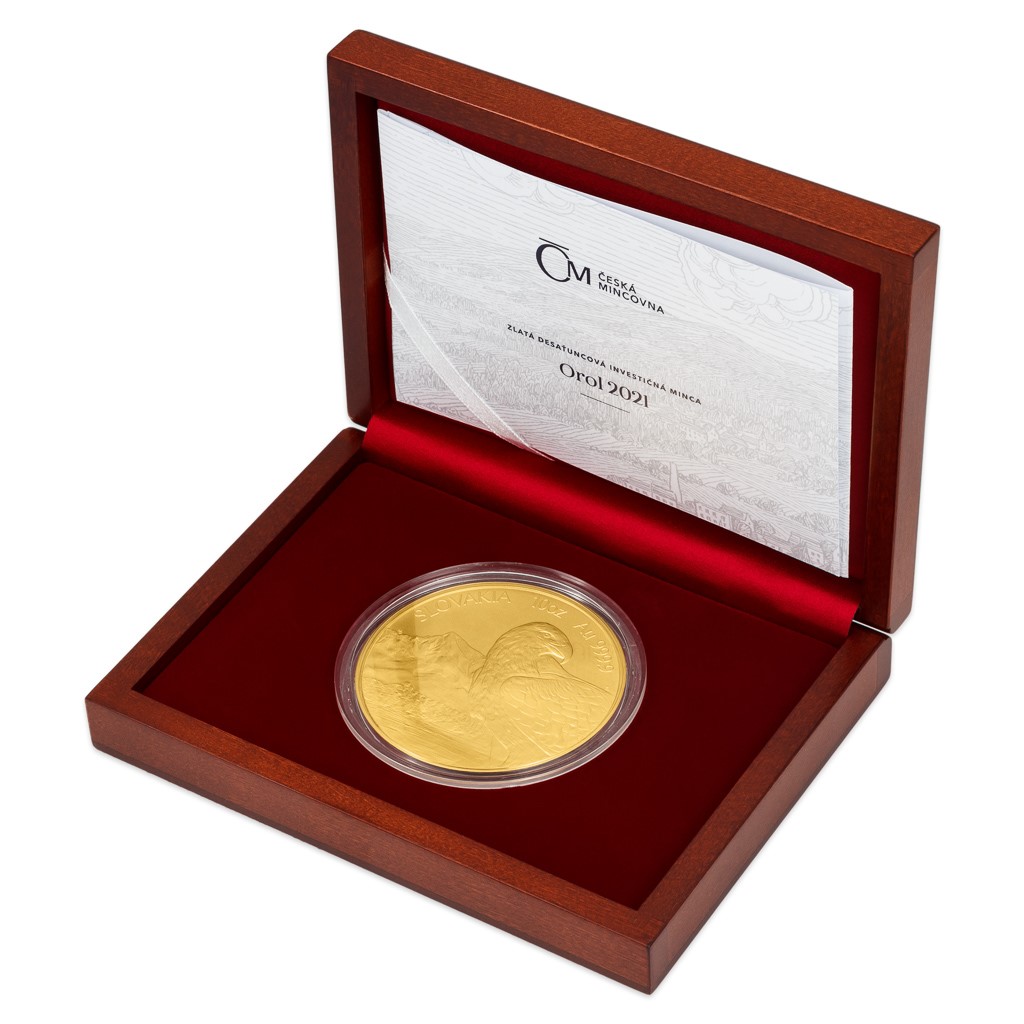 Světové investiční mince bývají věnovány silným národním symbolům a ani „Orol“, který je první ražbou svého druhu určenou pro slovenský trh, není výjimkou. Hmotnost zlaté mince České mincovny činí deset trojských uncí.