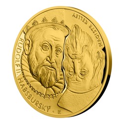 Zlatá dvouuncová investiční mince Rudolf II. Habsburský a Magistr Kelley proof