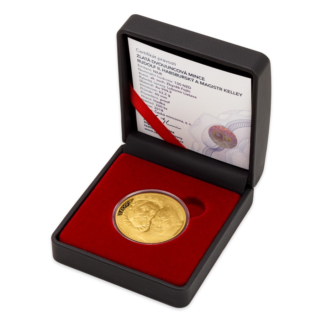 Zlaté mince České mincovny o hmotnosti dvou trojských uncí jsou tradičně věnovány známým historickým dvojicím – dosud se na nich představili reformátoři, umělci a panovníci. S nejnovější emisí se vypravíte do okouzlujícího světa alchymie. Vašimi průvodci budou císař Rudolf II. a magistr Kelley.